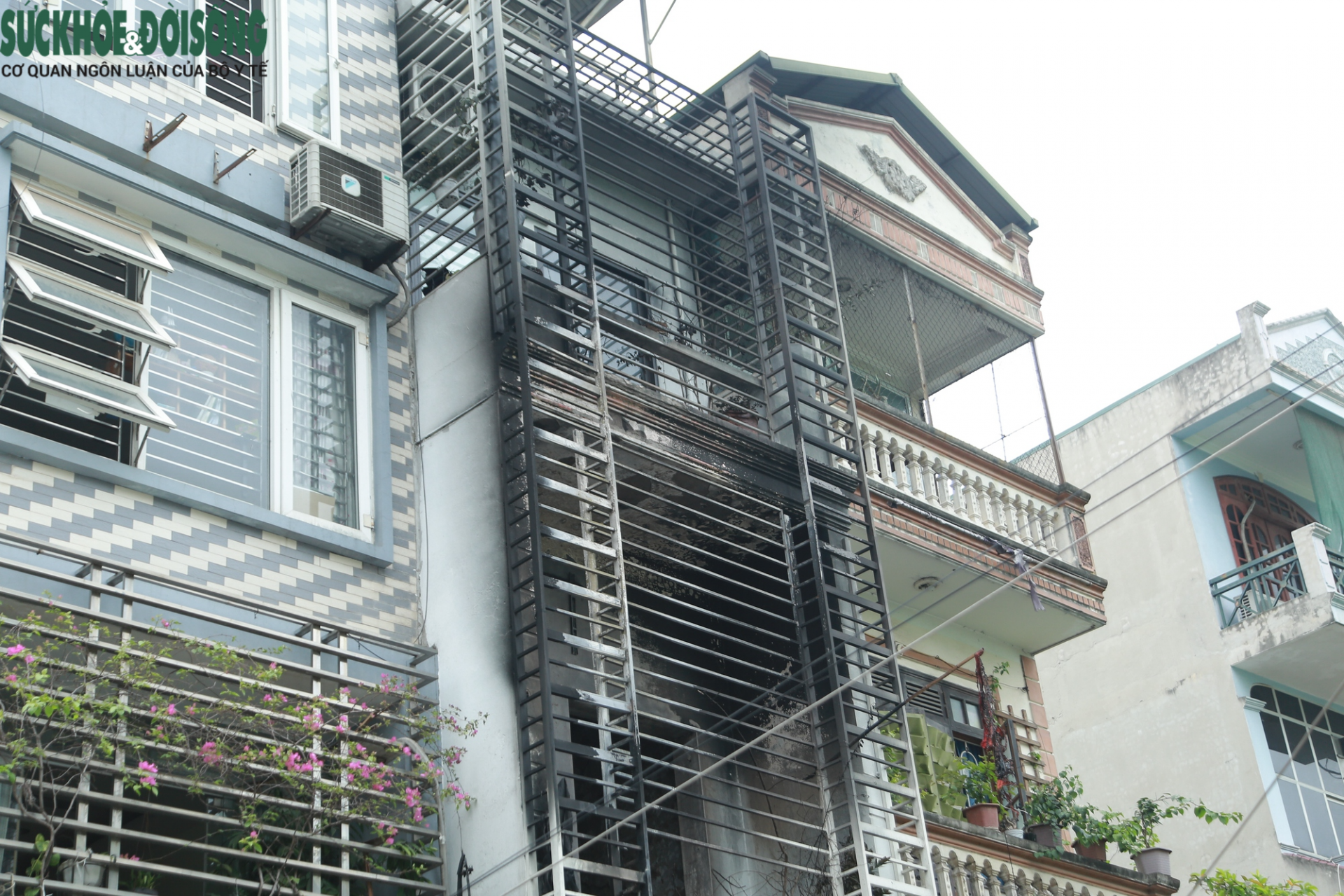 Mặt tiền tầng 2 và tầng 3 của ngôi nhà lắp kín khung sắt gây khó khăn cho việc chữa cháy và thoát hiểm.