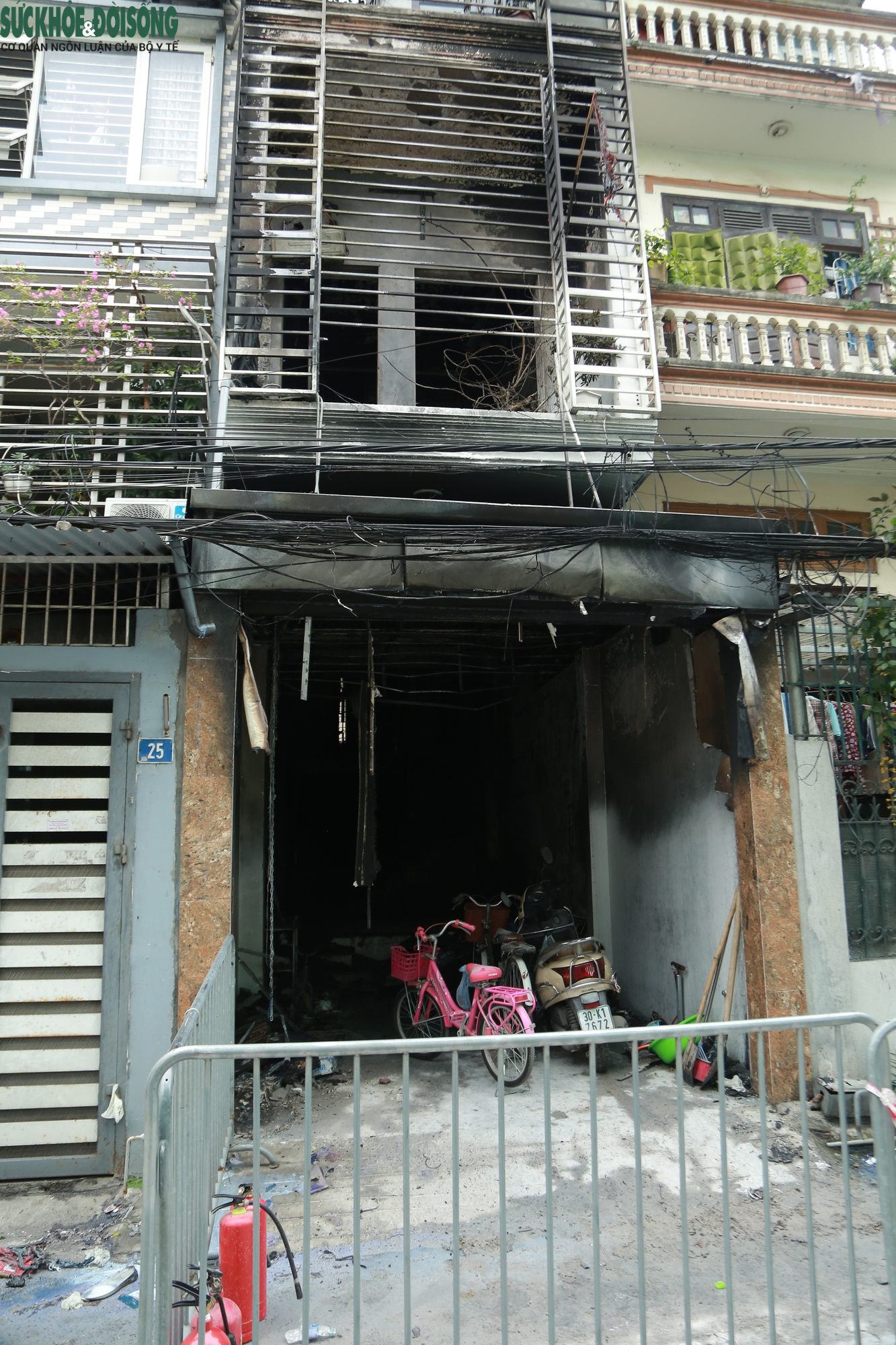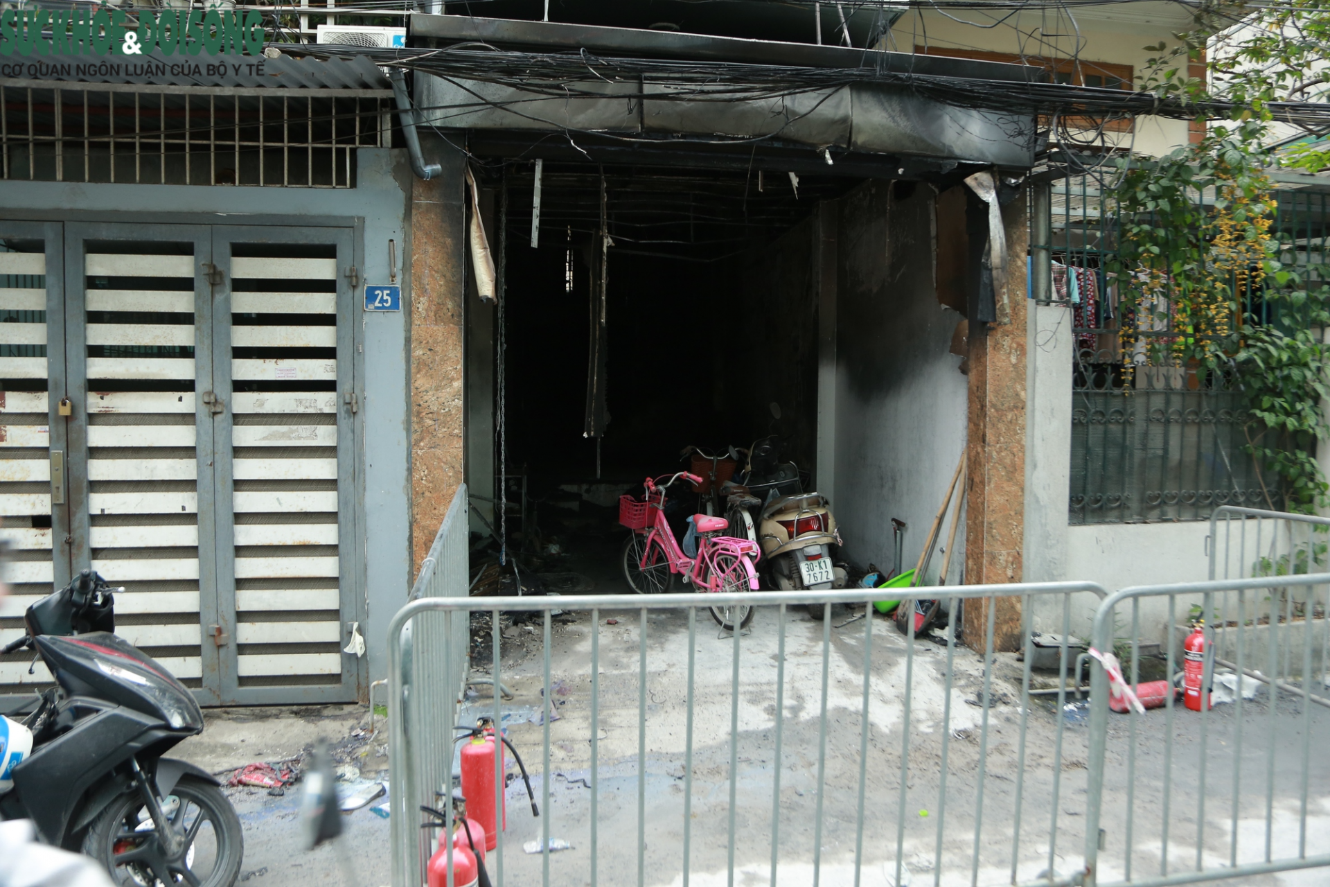 Căn nhà xảy ra vụ hỏa hoạn ở Hà Đông, Hà Nội khiến 4 bà cháu tử vong được bao bọc phía trước bằng lớp chuồng cọp kiên cố.