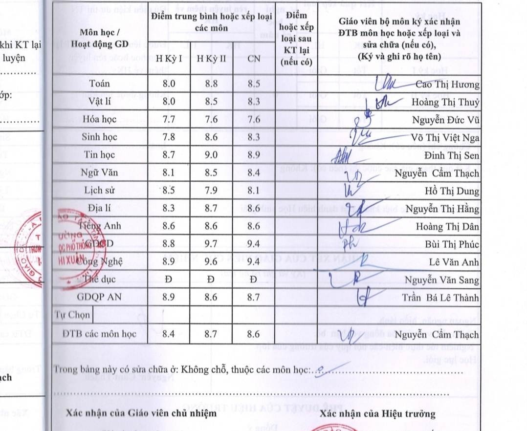 Học bạ của một học sinh xuất sắc. Em đã từ chối cánh cửa ĐH để đi Hàn Quốc. (Ảnh: Thầy D. cung cấp)