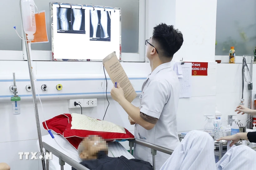 Bác sỹ theo dõi sức khỏe cho một bệnh nhân cấp cứu. (Ảnh: Minh Quyết/TTXVN)