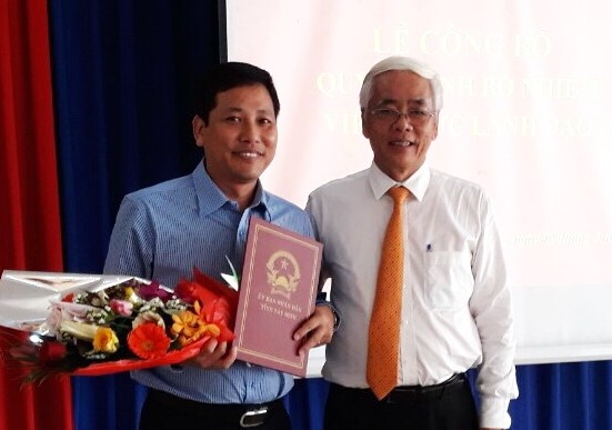 Ông Phan Văn Sử- Giám đốc Sở Nội vụ trao quyết định bổ nhiệm cán bộ cho ông Trần Thái Nam.