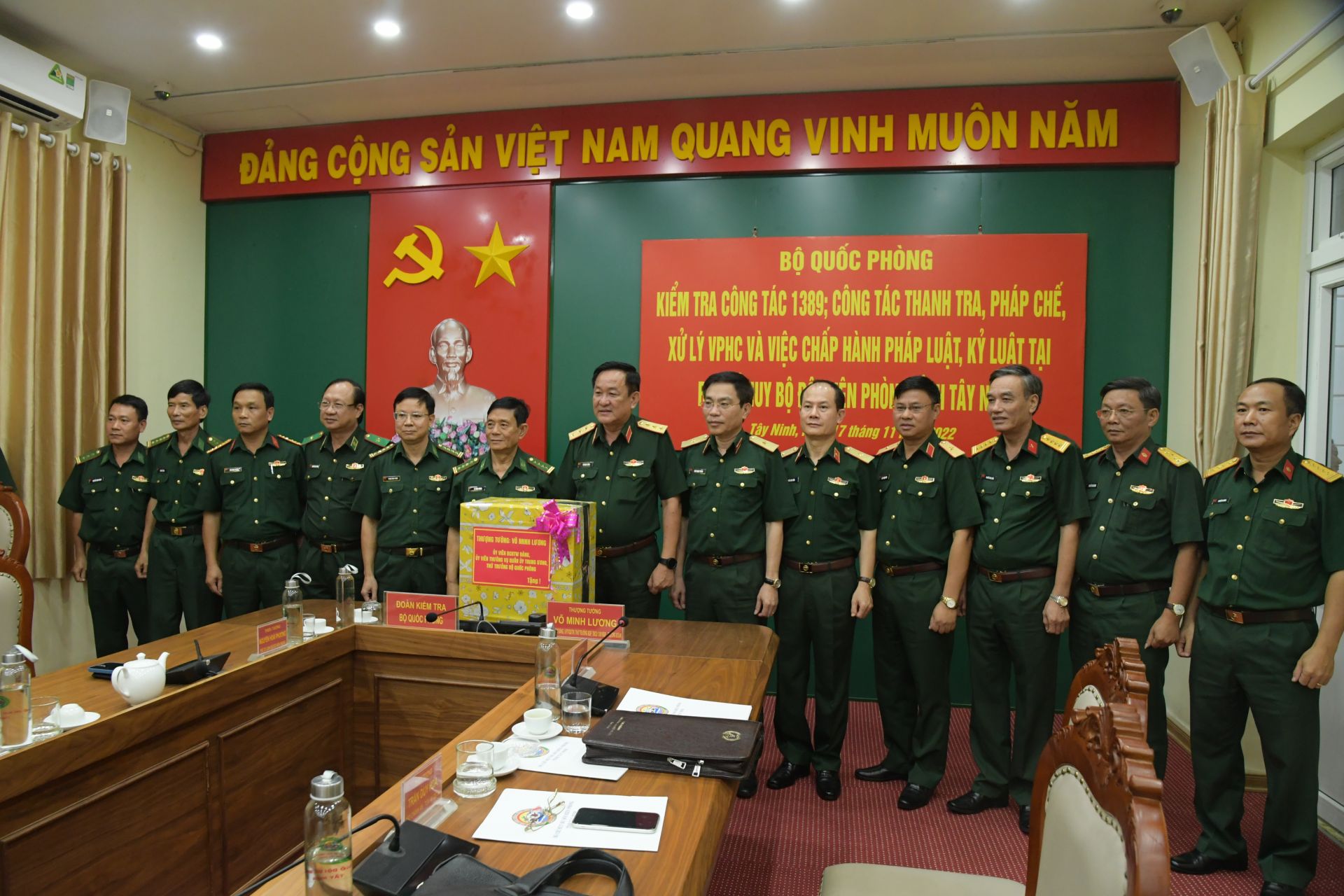 Ngày 17.11, đoàn công tác của Bộ Quốc phòng do Thượng tướng Võ Minh Lương – Thứ trưởng Bộ Quốc phòng làm trưởng đoàn đến kiểm tra công tác 1389; xử lý vi phạm hành chính; việc chấp hành pháp luật, kỷ luật tại Bộ Chỉ huy Bộ đội Biên phòng tỉnh Tây Ninh. Cùng đi có Thiếu tướng Nguyễn Hoài Phương, Phó Tư lệnh BĐBP.