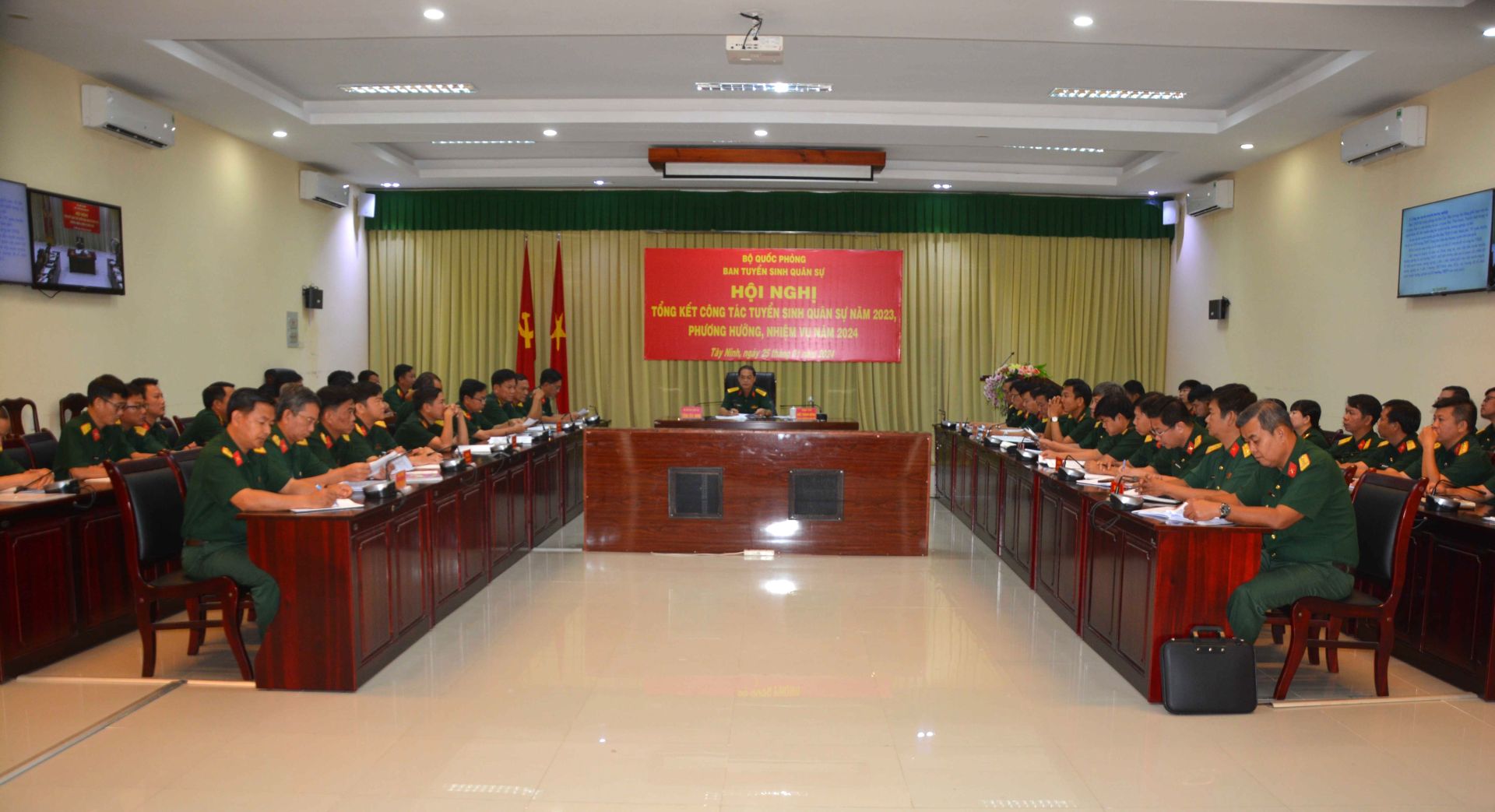 Hội nghị được trực tuyến đến 86 điểm cầu. Tại điểm cầu Bộ CHQS tỉnh Tây Ninh, Đại tá Ngô Thành Đồng- Chỉ huy trưởng Bộ CHQS tỉnh chủ trì hội nghị, cùng dự có chỉ huy các cơ quan, đơn vị, địa phương trong LLVT tỉnh.