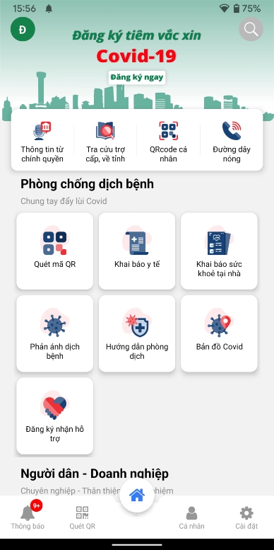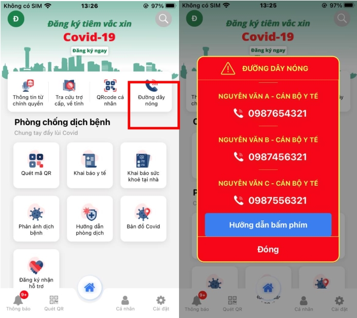 + Cách 2: Mở ứng dụng và chọn “Đường dây nóng” để liên hệ với cán bộ y tế phụ trách như hình sau: