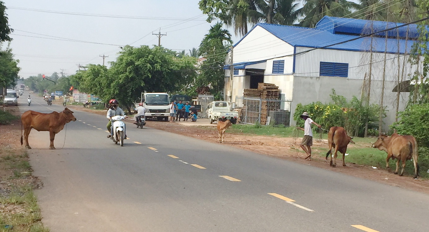 Trên tuyến đường Phạm Hùng, thuộc ấp Long Chí, xã Long Thành Trung, huyện Hoà Thành, tình trạng người dân thả rông bò đi ra đường vẫn còn diễn ra. Ðây là tuyến đường có mật độ phương tiện qua lại cao, gây nguy hiểm cho người đi đường.