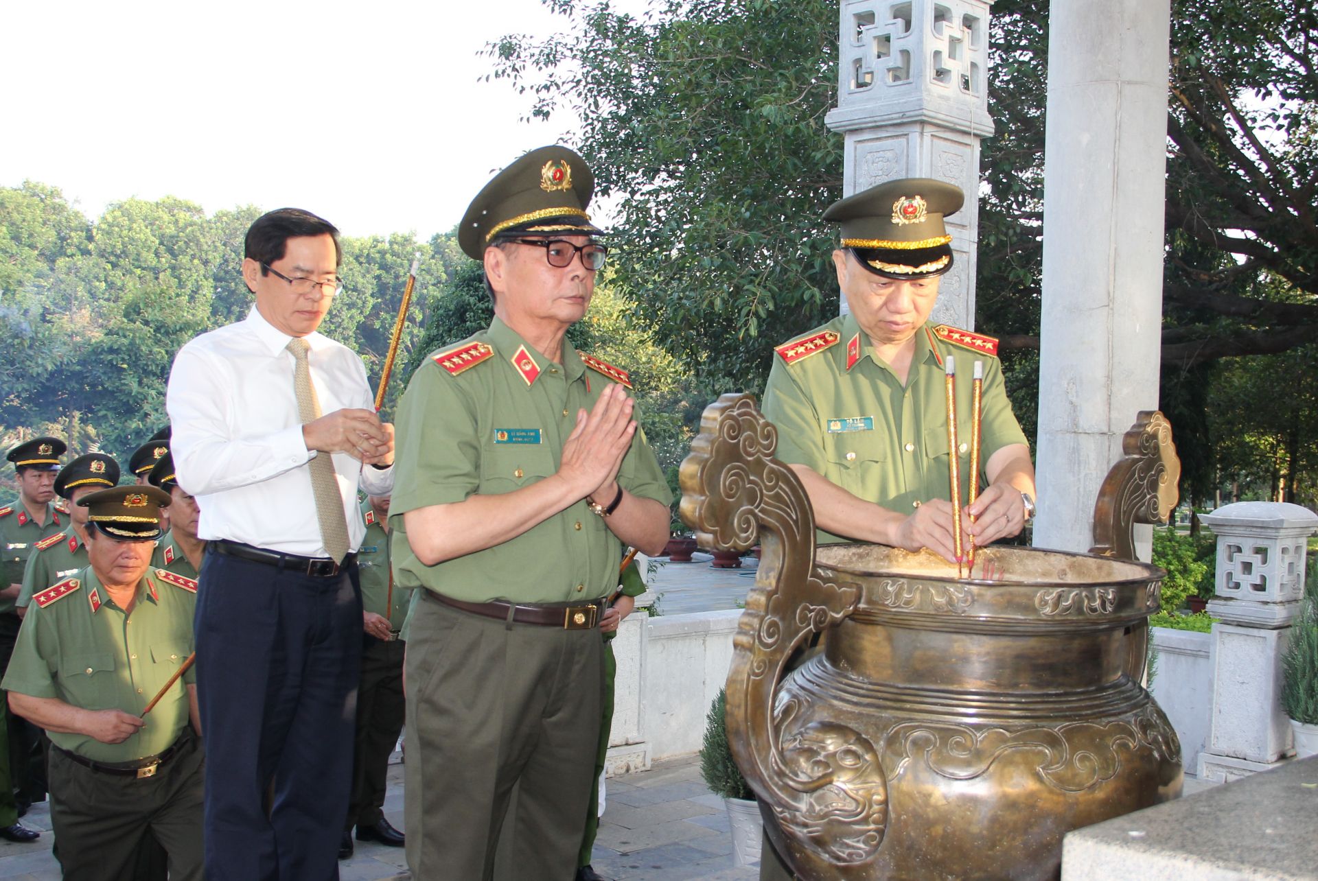 Trong không khí trang nghiêm, Đại tướng Tô Lâm đã đánh 3 tiếng chuông cung thỉnh các hương hồn liệt sỹ; các đại biểu đã dâng hoa, dâng hương bày tỏ sự tri ân sâu sắc đến các anh hùng liệt sĩ tại Nghĩa trang liệt sỹ Đồi 82; Nghĩa trang liệt sỹ Ban An ninh Trung ương cục miền Nam.