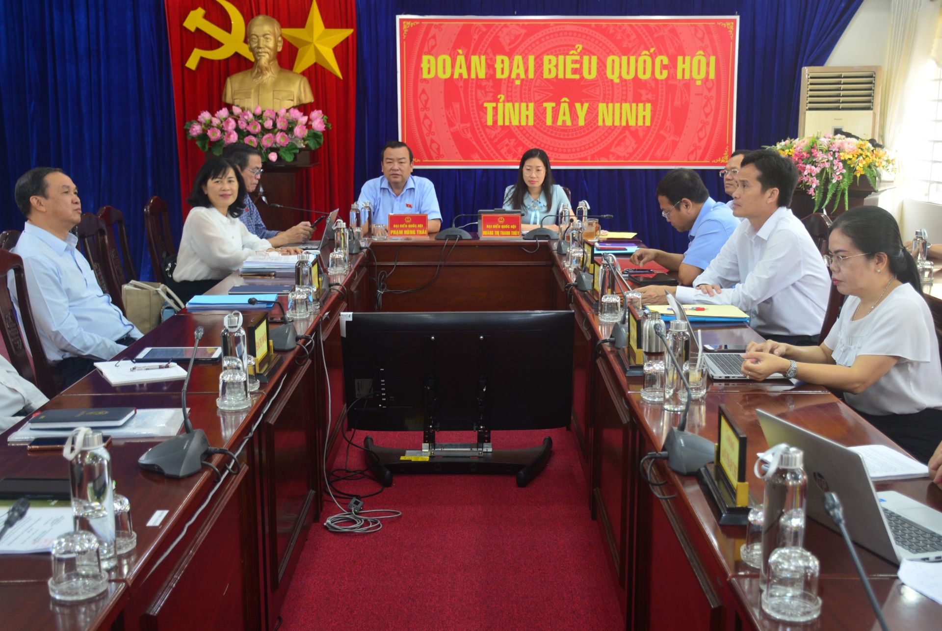 Tại điểm cầu Tây Ninh, tham dự phiên chất vấn có các đại biểu Quốc hội đơn vị tỉnh Tây Ninh: Phạm Hùng Thái, Hoàng Thị Thanh Thuý, Trần Hữu Hậu, Huỳnh Thanh Phương cùng đại diện lãnh đạo UBND tỉnh.