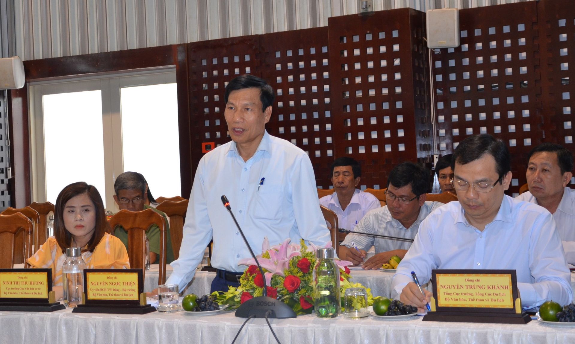 Phát biểu tại buổi làm việc, Bộ trưởng Bộ VHTT&DL Nguyễn Ngọc Thiện cho rằng, tỉnh xác định phát triển du lịch là hướng đi đúng đắn và khẳng định, phải phát triển du lịch mới có nguồn thu để trùng tu, tôn tạo và phát triển các di tích lịch sử, văn hóa. Du lịch và văn hóa phải song hành trong phát triển. Phải làm sao cho khách du lịch đến thường xuyên, giữ chân khách được lâu hơn, muốn vậy phải gắn kết các điểm du lịch tạo thành chuỗi liên kết để thu hút khách. Chú trọng các dịch vụ đi kèm để mang nguồn thu ổn định từ du lịch.