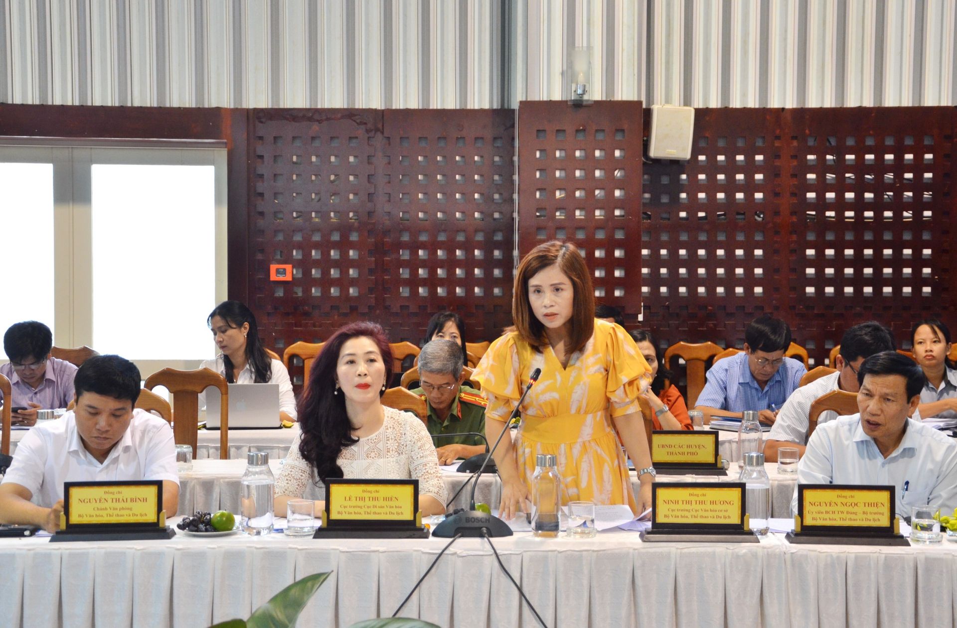 Bà Ninh Thị Thu Hương- Cục trưởng Cục Văn hóa cơ sở đóng góp ý kiến tại buổi làm việc.