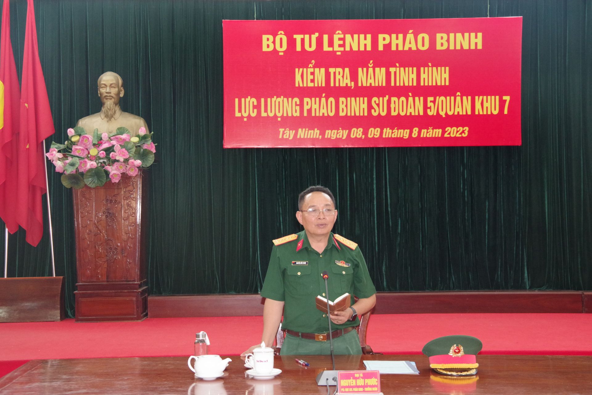Trong 2 ngày 8-9.8, Đại tá Nguyễn Hữu Phước- Phó Tư lệnh, Tham mưu trưởng Bộ Tư lệnh Pháo binh làm trưởng đoàn đến kiểm tra chuyên ngành pháo binh tại Sư đoàn 5. Cùng đi có Thiếu tướng Lê Ngọc Hải- Phó Tham mưu trưởng Quân khu 7.