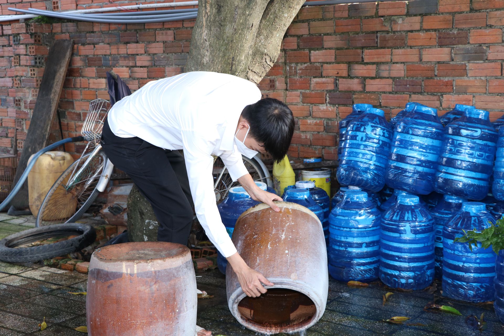 Người dân đổ nước, lật úp các dụng cụ chứa nước không còn sử dụng, diệt lăng quăng.