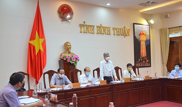 PGS, TS Nguyễn Trường Sơn, Thứ trưởng Y tế, Phó trưởng Ban Chỉ đạo quốc gia phòng, chống dịch Covid-19 tại cuộc họp với tỉnh Bình Thuận.