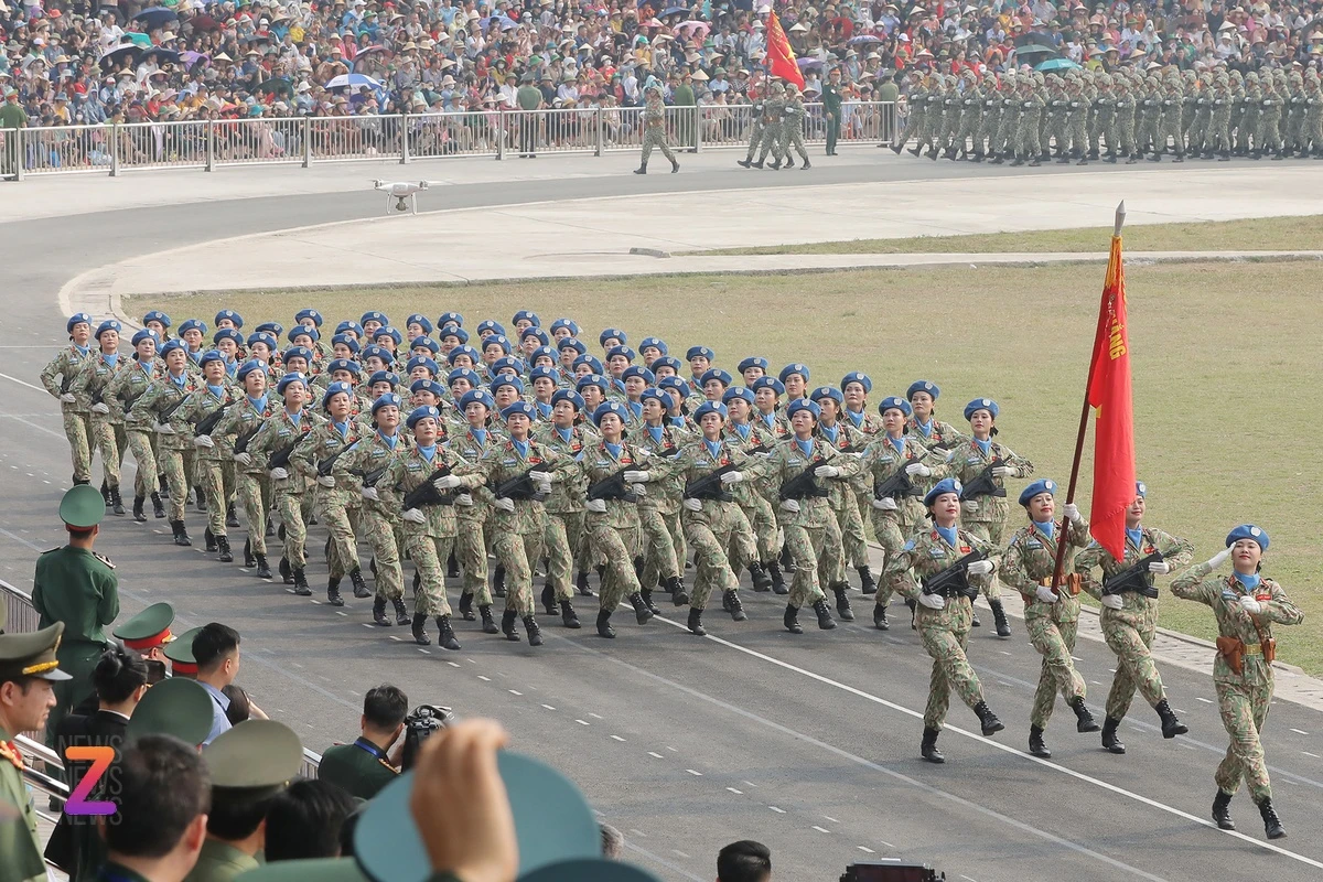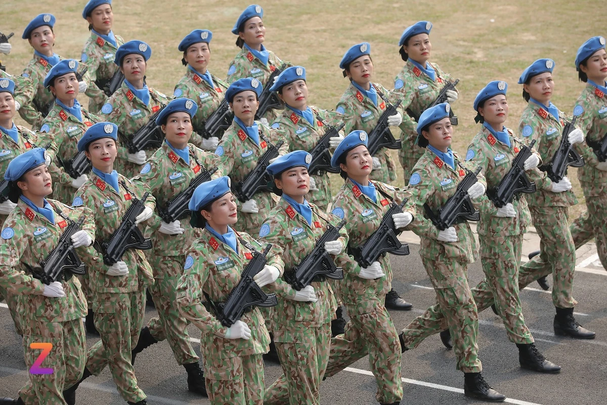 Các nữ chiến sĩ thuộc lực lượng Gìn giữ hòa bình Việt Nam tham gia diễu binh.