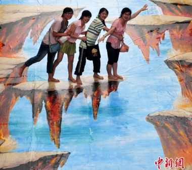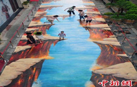 Ngày 17.7 vừa qua, lần đầu tiên trên quảng trường Vạn Đạt, Đài Giang tỉnh Phúc Châu (Trung Quốc) xuất hiện bức tranh 3D hoành tráng đến vậy. Với chiều dài 50 mét, chiều rộng 5 mét, tác phẩm nghệ thuật này đã thu hút rất đông người dân và khách du lịch ghé thăm chụp ảnh lưu niệm.