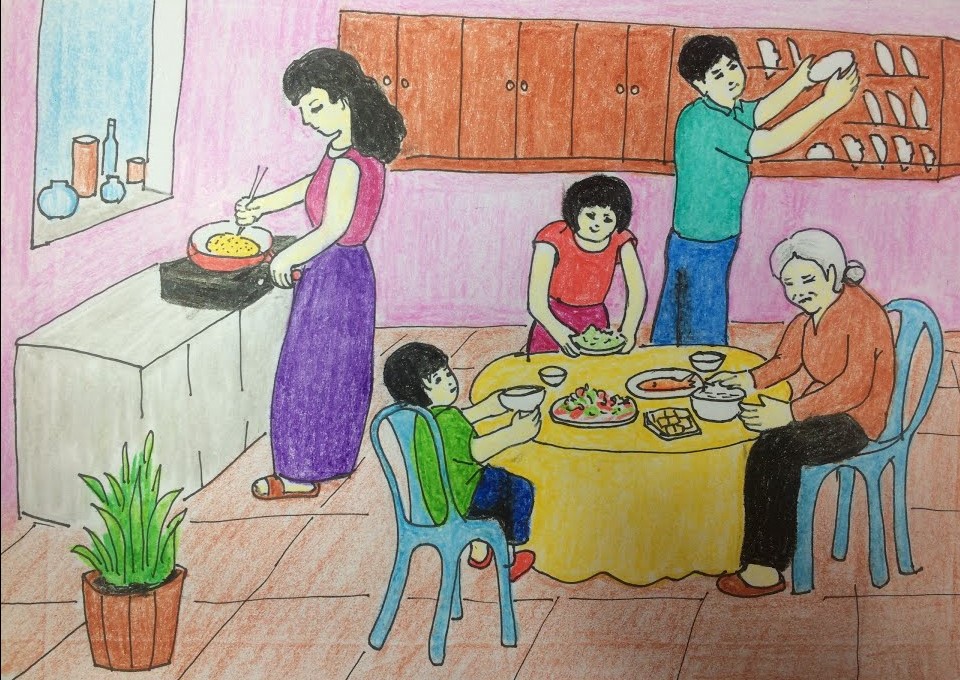 Trong làn mưa bay bay, gia đình quây quần người thì giã cua, người cắt cây chuối non vào bào mỏng, người kia ngắt nắm lá quế nhà trồng, tiện tay bào luôn mấy cọng rau muống... Rồi cùng bày biện lên chiếc mâm nho nhỏ với đủ màu xanh của rau, trắng của bún, vàng ươm của gạch cua, đo đỏ của ớt xắt lát... thì “cả thế giới” chỉ còn nghe tiếng hít hà và xì xụp khen ngợi vì nồi bún riêu cua “nhứt hạng”.