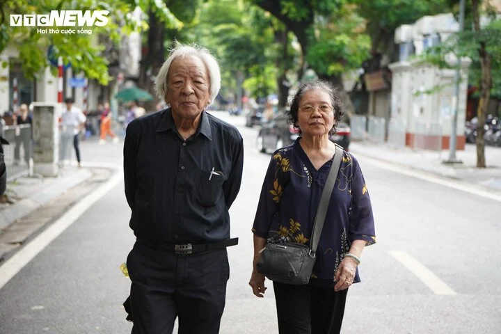 Cùng bước ra từ cổng Nhà tang lễ, bà Nghiêm Minh Mẫn (84 tuổi, quận Hoàng Mai, Hà Nội) nặng trĩu nỗi buồn chia tay người đồng môn lớp Văn khóa 8 (Đại học Tổng hợp Hà Nội) - Tổng Bí thư Nguyễn Phú Trọng.