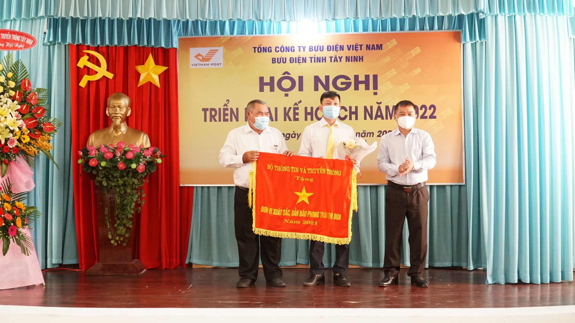 Bưu điện Thành phố Tây Ninh vinh dự nhận cờ thi đua của Bộ Thông tin và Truyền thông vì có thành tích dẫn đầu phong trào thi đua năm 2021.