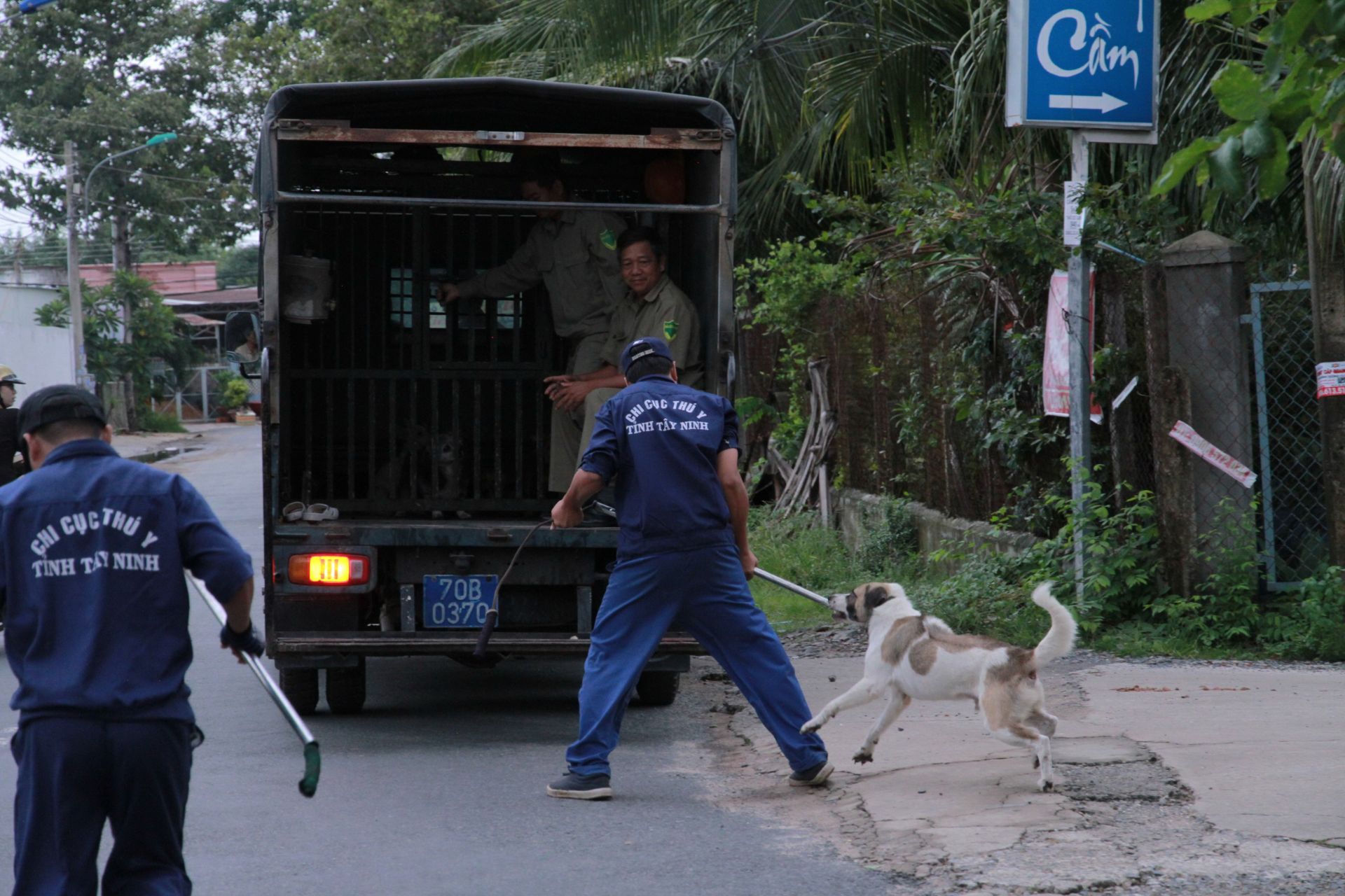 Ngành chức năng bắt chó thả rông tại đường Nguyễn Văn Rốp, phường IV, thành phố Tây Ninh.