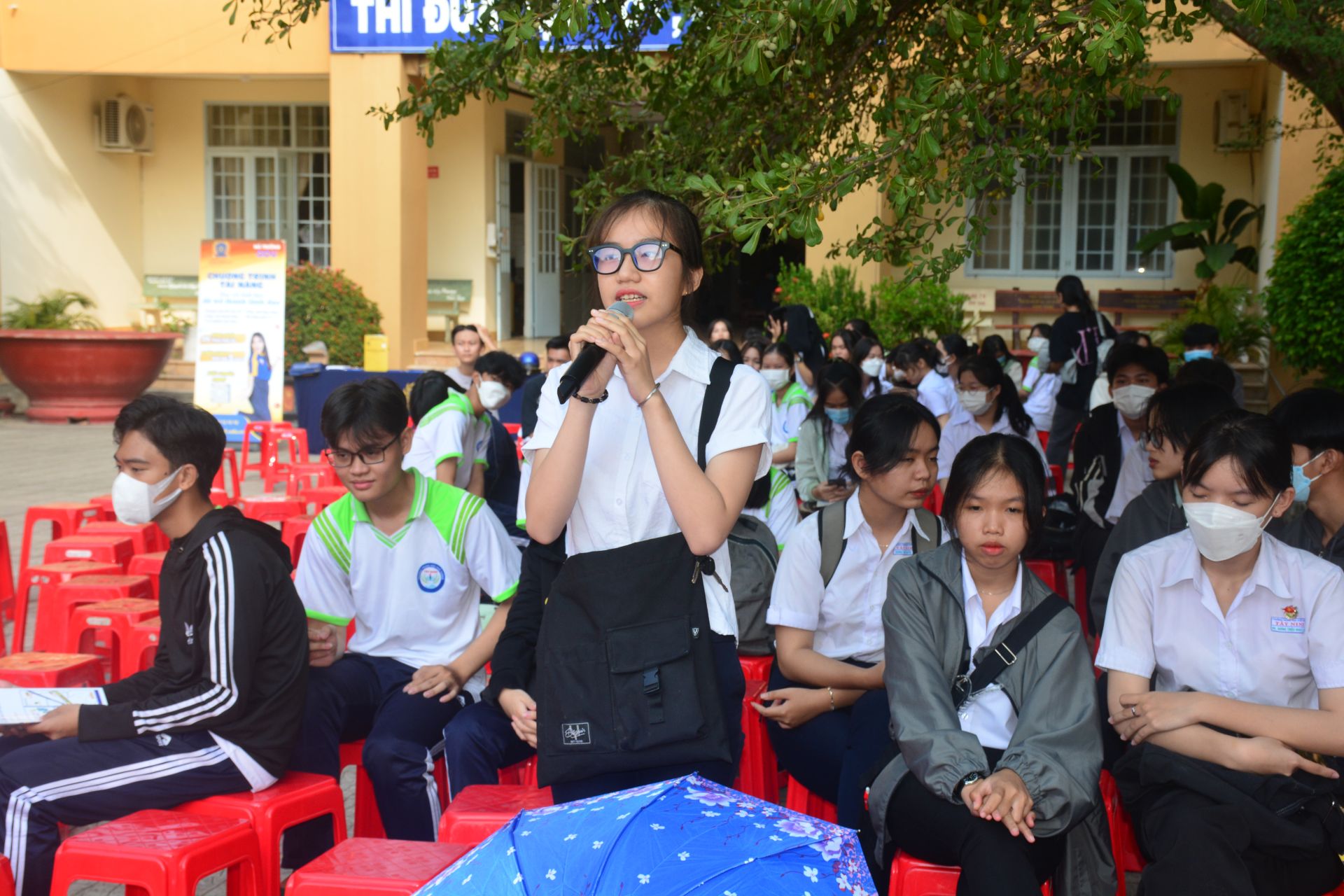 Học sinh Trường THPT Tây Ninh đặt câu hỏi trong một buổi tư vấn tuyển sinh đại học.