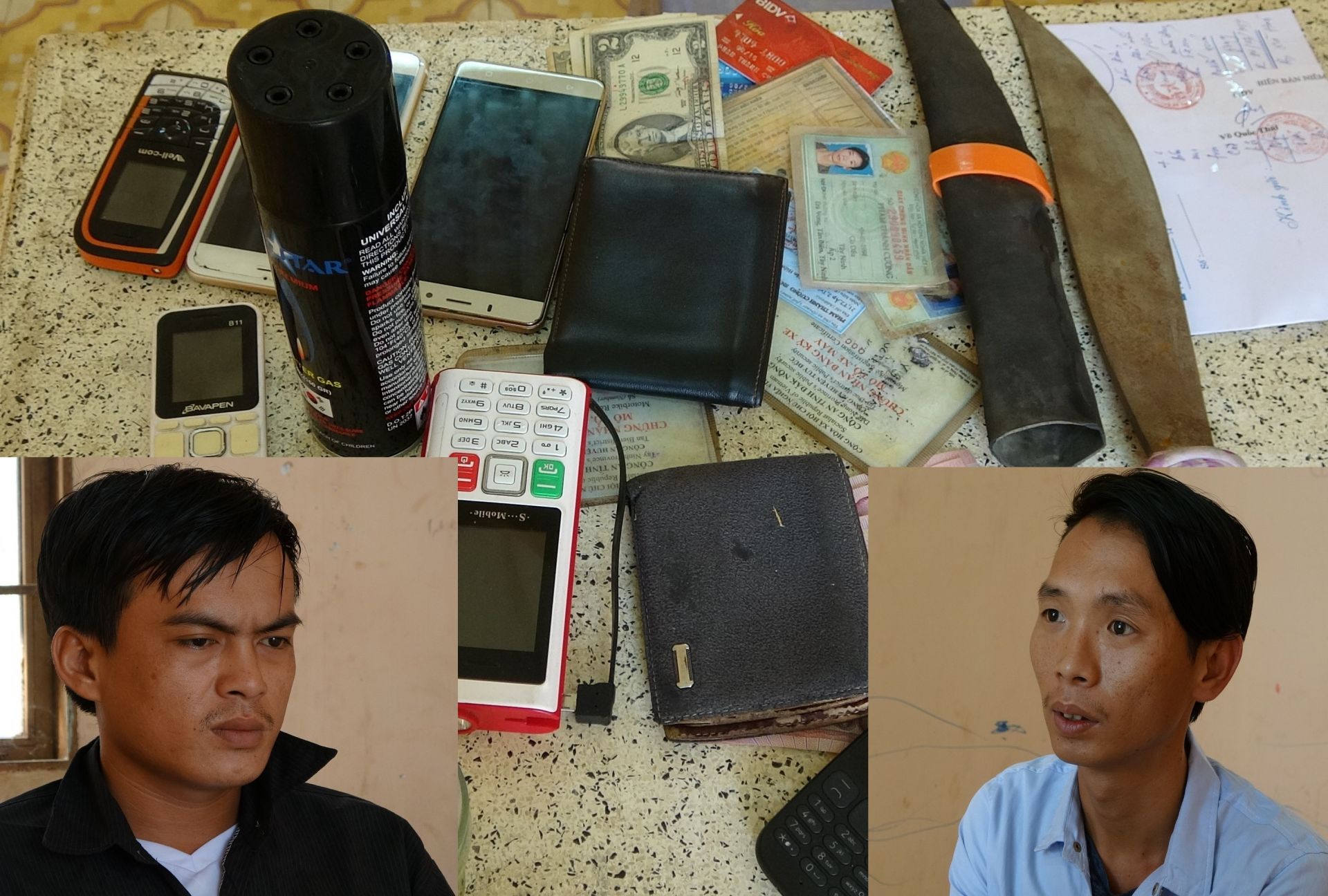 Hai đối tượng An (bên trái) và Cường cùng tang vật vụ án.