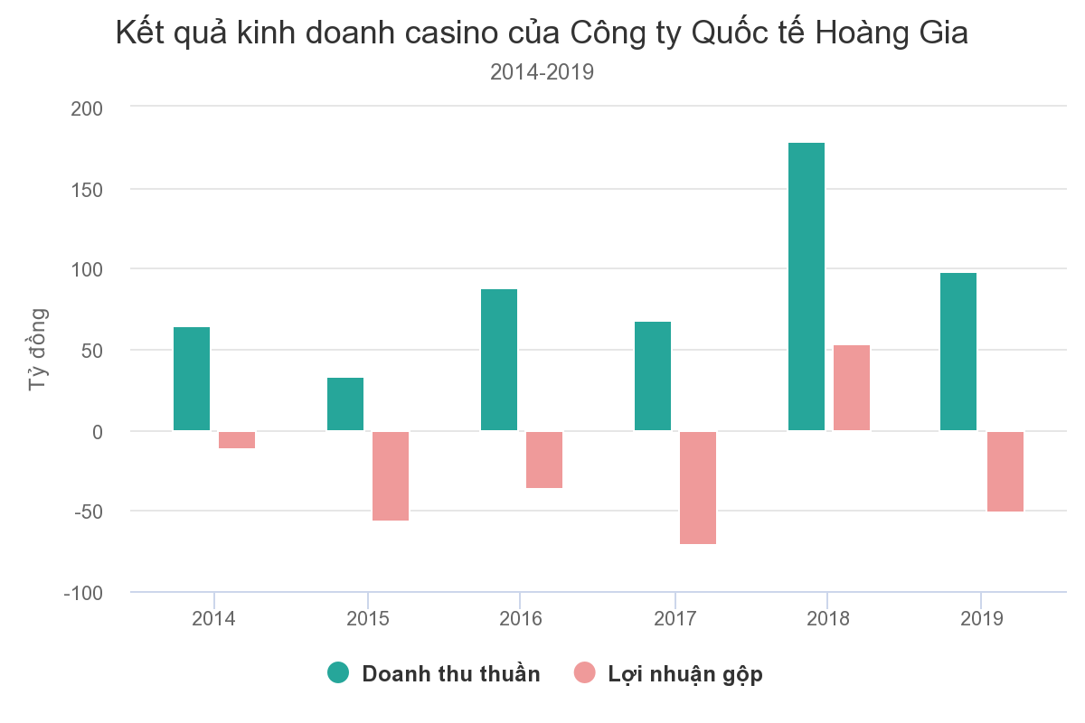 Nhưng mảng kinh doanh này những năm gần đây luôn lỗ. Ngoại trừ năm 2018, RIC ghi nhận doanh thu tăng đột biến giúp lợi nhuận gộp từ mảng casino là số dương, những năm còn lại đều chịu lỗ.