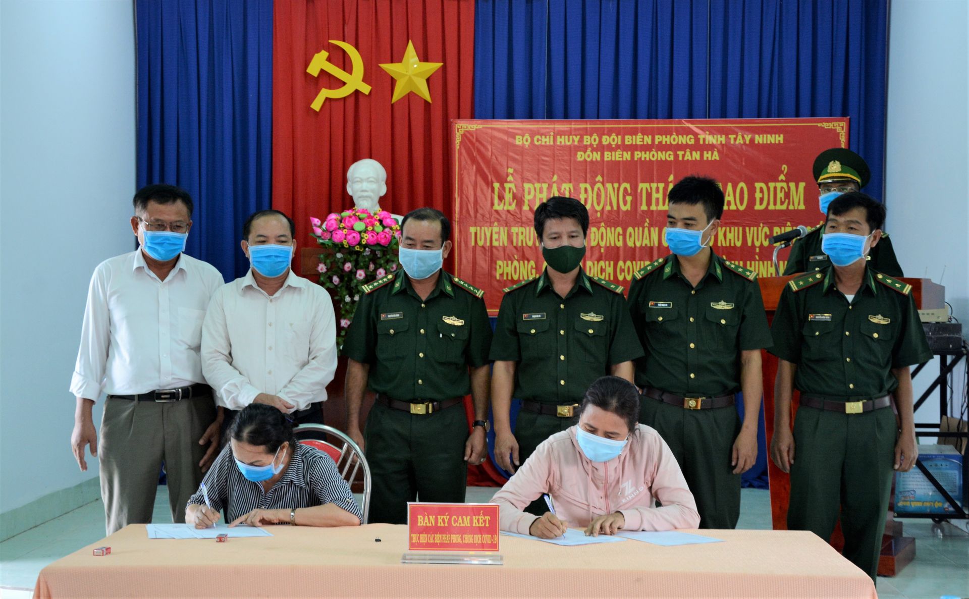 Đồn Biên phòng Tân Hà tổ chức tuyên truyền và cho người dân biên giới xã Tân Hà ký cam kết thực hiện các biện pháp phòng, chống dịch Covid-19