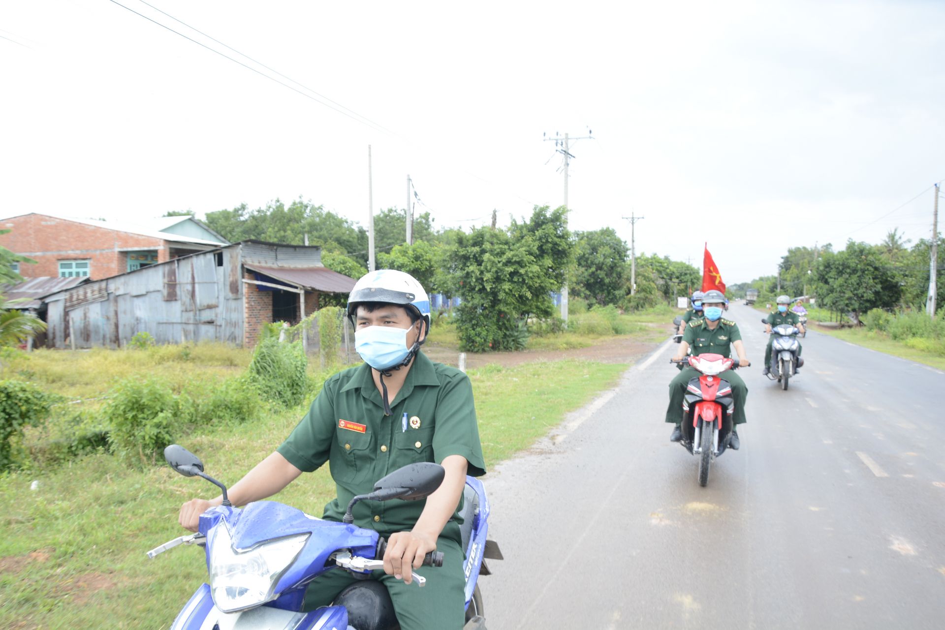 Cán bộ, chiến sĩ Đồn Biên phòng Tân Hà tuyên truyền lưu động phòng, chống dịch Covid-19 trên địa bàn xã Tân Hà, huyện Tân Châu.
