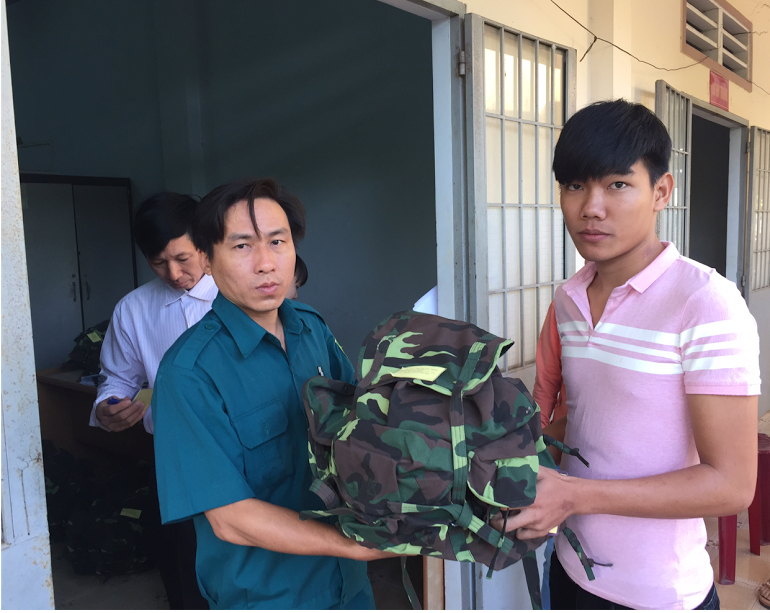 Sau khi tiếp nhận các công dân, Ban CHQS các xã/thị trấn đã làm thủ tục cấp phát quân trang, cho các thanh niên sinh hoạt tại đơn vị.