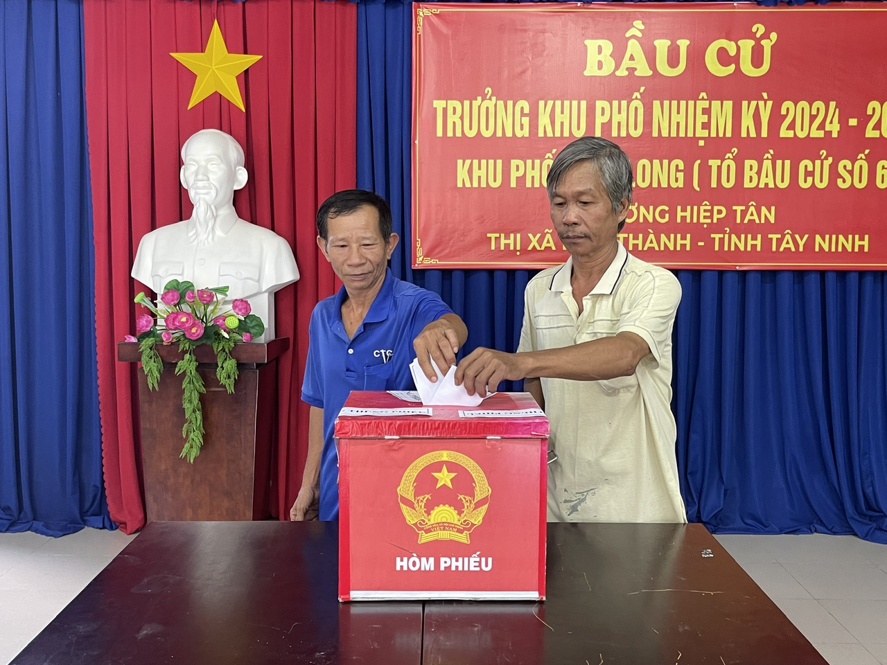 Từ sáng sớm, tại khu phố Hiệp Hoà và Hiệp Long (phường Hiệp Tân), công tác chuẩn bị cho ngày bầu cử trưởng khu phố nhiệm kỳ 2024-2029 đã sẵn sàng, người dân đi bầu cử đông đủ, đúng hướng dẫn của các thành viên tổ bầu cử.