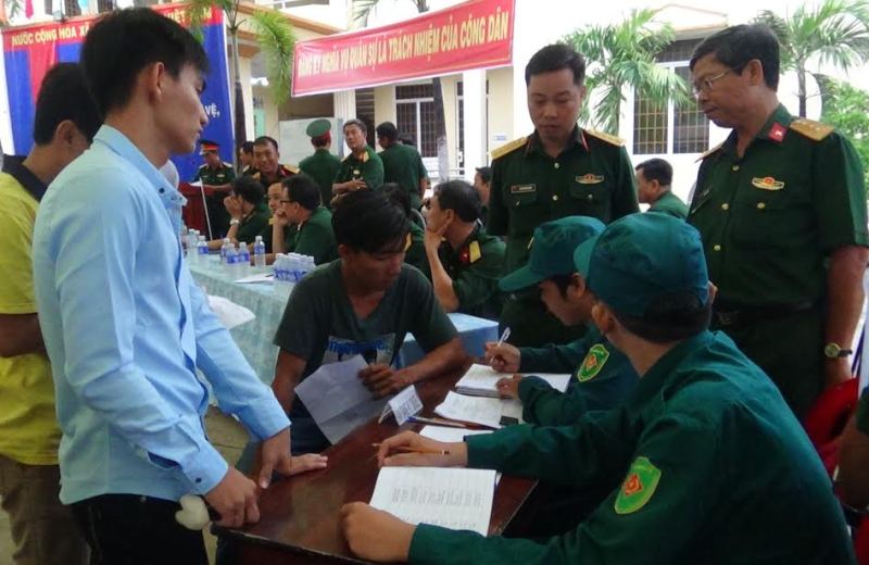 Công dân xã Tân Bình đăng ký nghĩa vụ quân sự.
