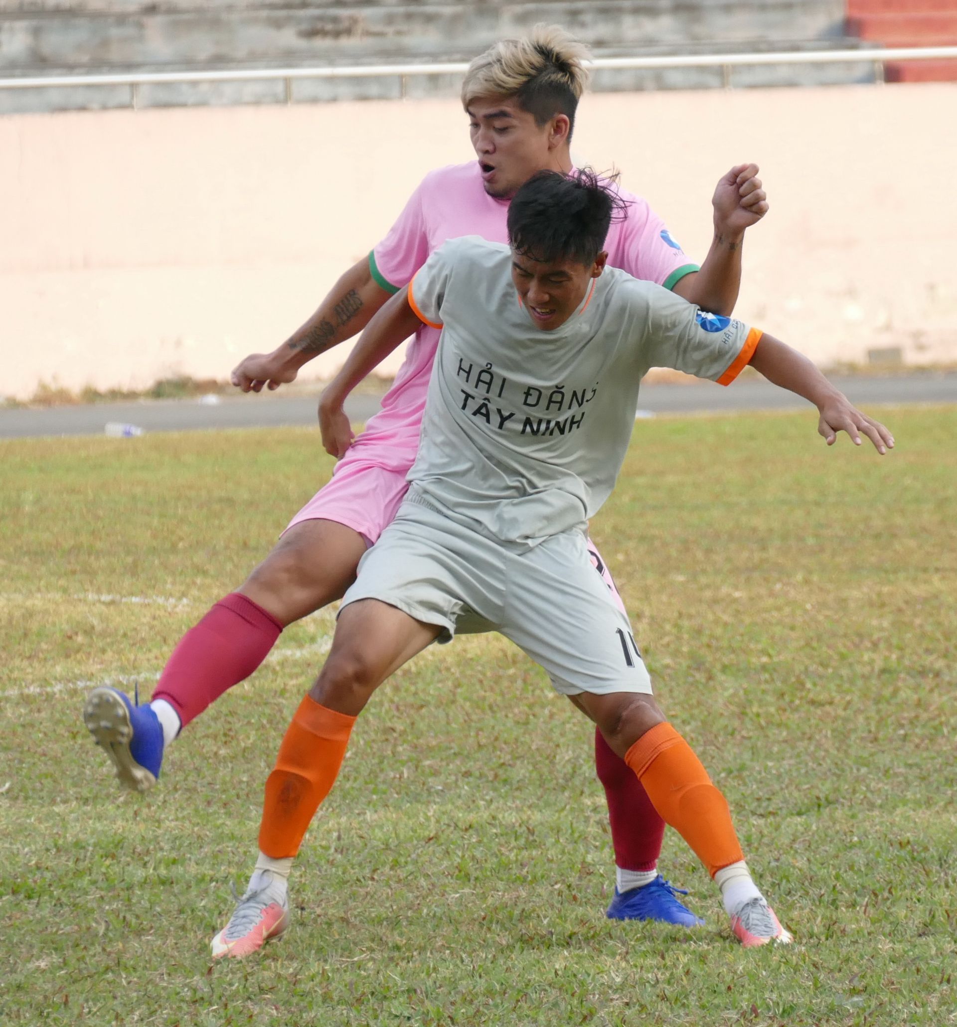 Pha tranh chấp trong trận GLTH.FC gặp Tiến Sports FC ở ở lượt trận thứ 2 vòng loại bảng C.