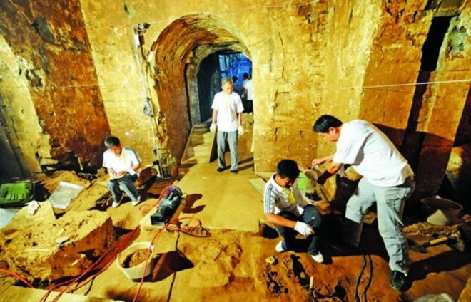 Các nhà khảo cổ khai quật tại tổ hợp lăng mộ khổng lồ của Tào Tháo. (Nguồn: medium.com)
