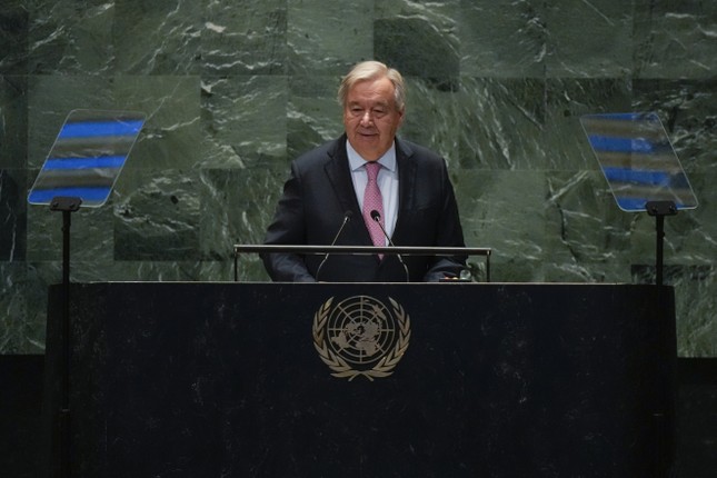 Tổng Thư ký LHQ António Guterres phát biểu tại Hội nghị Thượng đỉnh Tương lai, ngày 22/9/2024 tại trụ sở LHQ ở thành phố New York của Mỹ. Ảnh: AP.