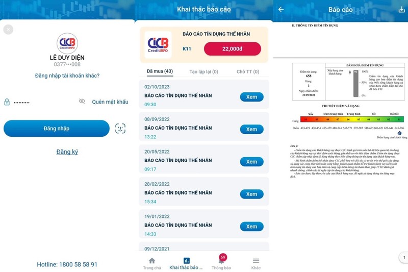 Sau 1-3 ngày làm việc để CIC kiểm tra thông tin, xác định người đăng ký là chủ nhân của số chứng minh nhân dân, tài khoản của bạn sẽ được kích hoạt. Lúc này, cá nhân đăng nhập vào CIC và chọn phần khai thác báo cáo, gồm các thông tin về điểm tín dụng, mức độ rủi ro và kiểm tra đang có nợ xấu hay không. Khai thác báo cáo thì các bạn sẽ có thông tin CIC.