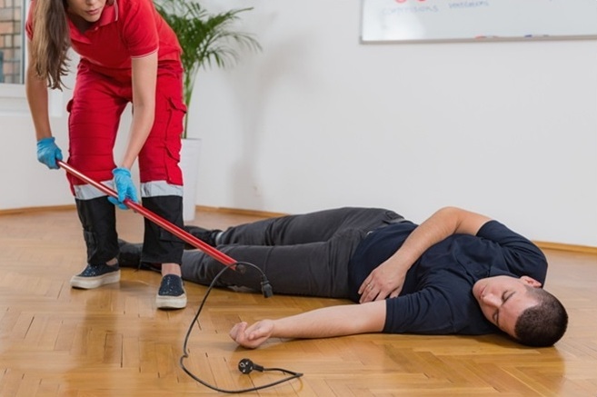 Nên dùng gậy gỗ để gạt dây điện ra khỏi người bị nạn. Ảnh: Medical News
