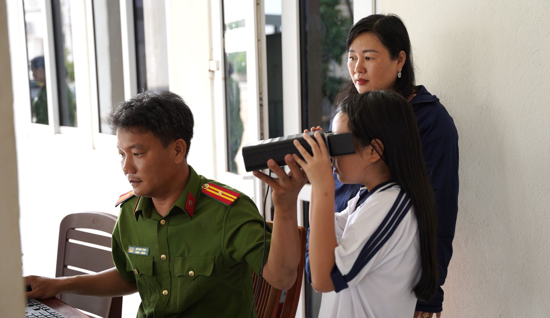 Công an huyện Dương Minh Châu làm thủ tục cấp thẻ căn cước cho trẻ em