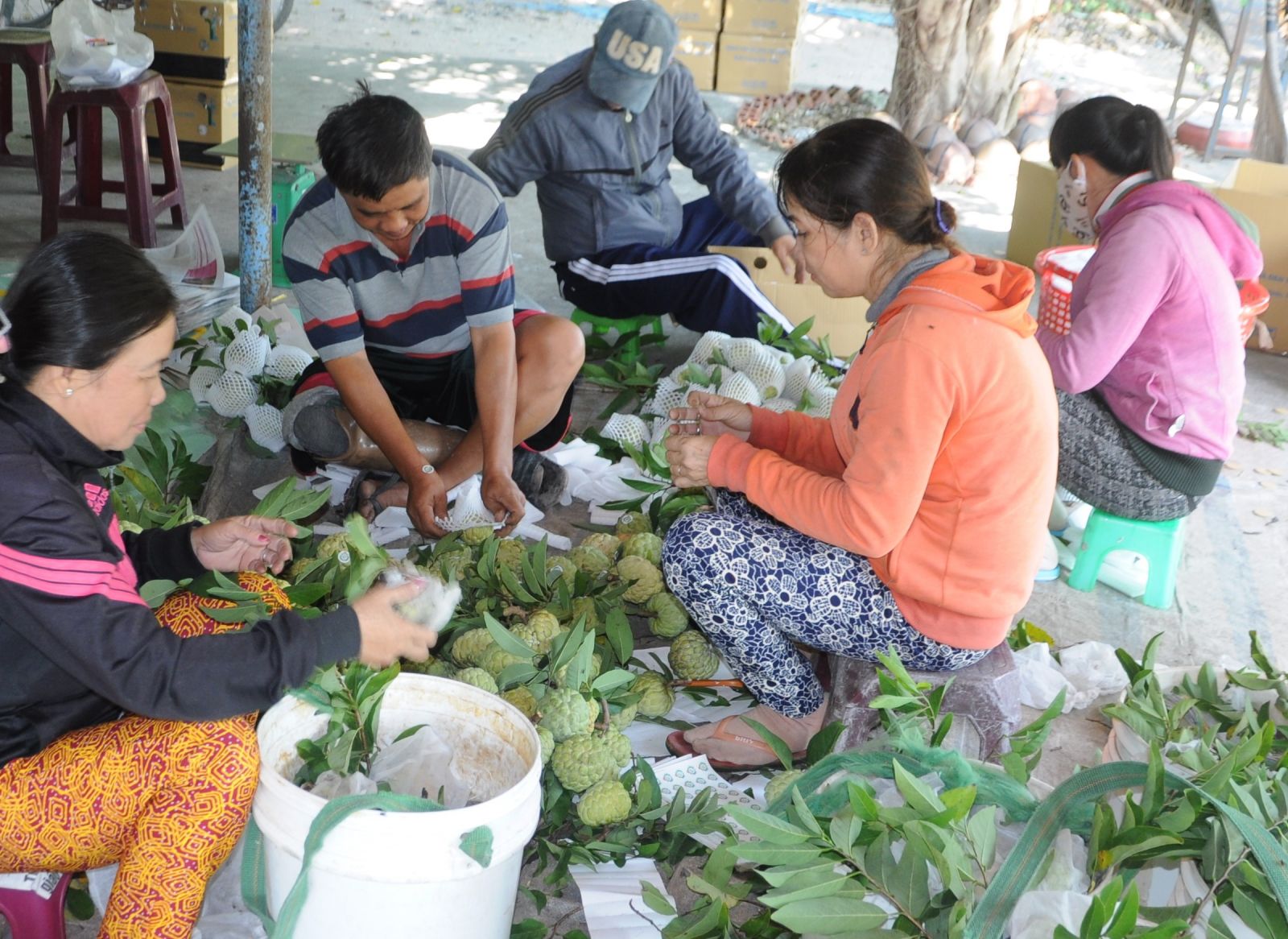 Nhân công thu hoạch mãng cầu VietGAP. (Ảnh: Hoàng Anh)