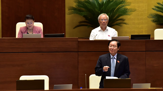 Bộ trưởng Bộ Nội vụ Lê Vĩnh Tân giải trình trước Quốc hội về một số vấn đề đại biểu quan tâm. Ảnh Ngọc Thắng
