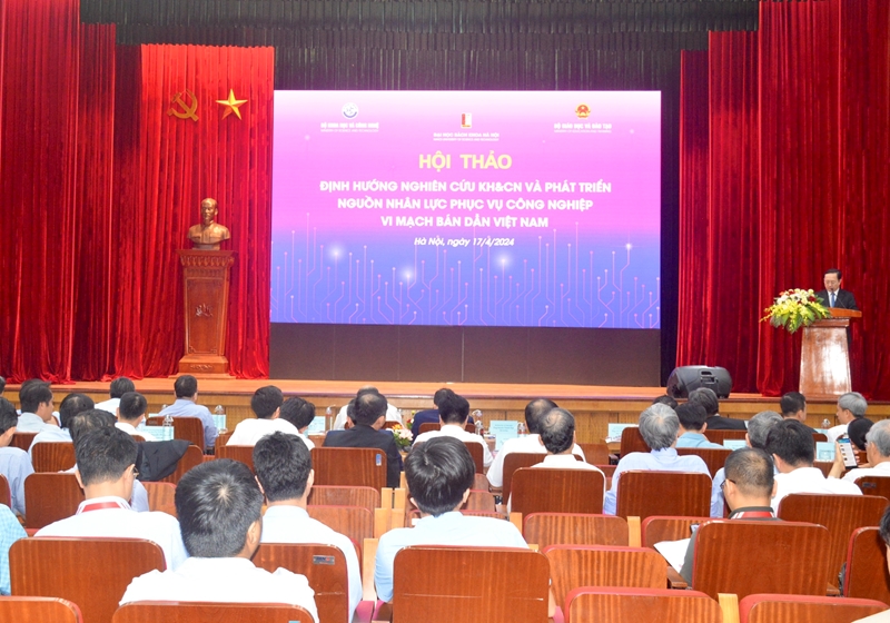 Sáng 17/4, tại Hà Nội, Bộ Khoa học và Công nghệ, Bộ Giáo dục và Đào tạo và Đại học Bách khoa Hà Nội phối hợp tổ chức Hội thảo “Định hướng nghiên cứu KH&CN và phát triển nguồn nhân lực phục vụ công nghiệp vi mạch bán dẫn Việt Nam”.