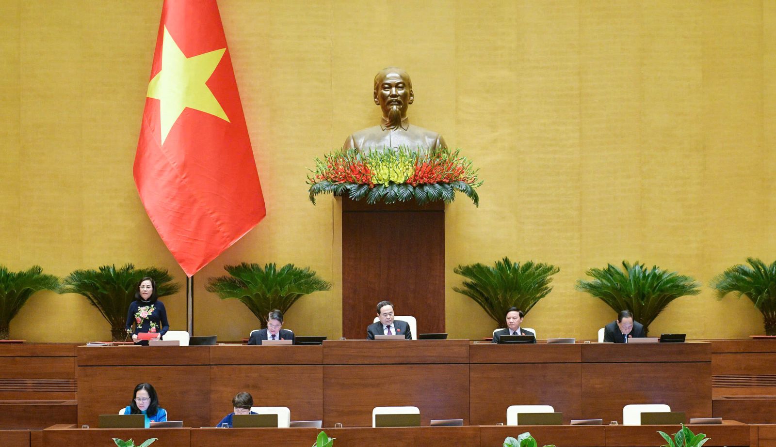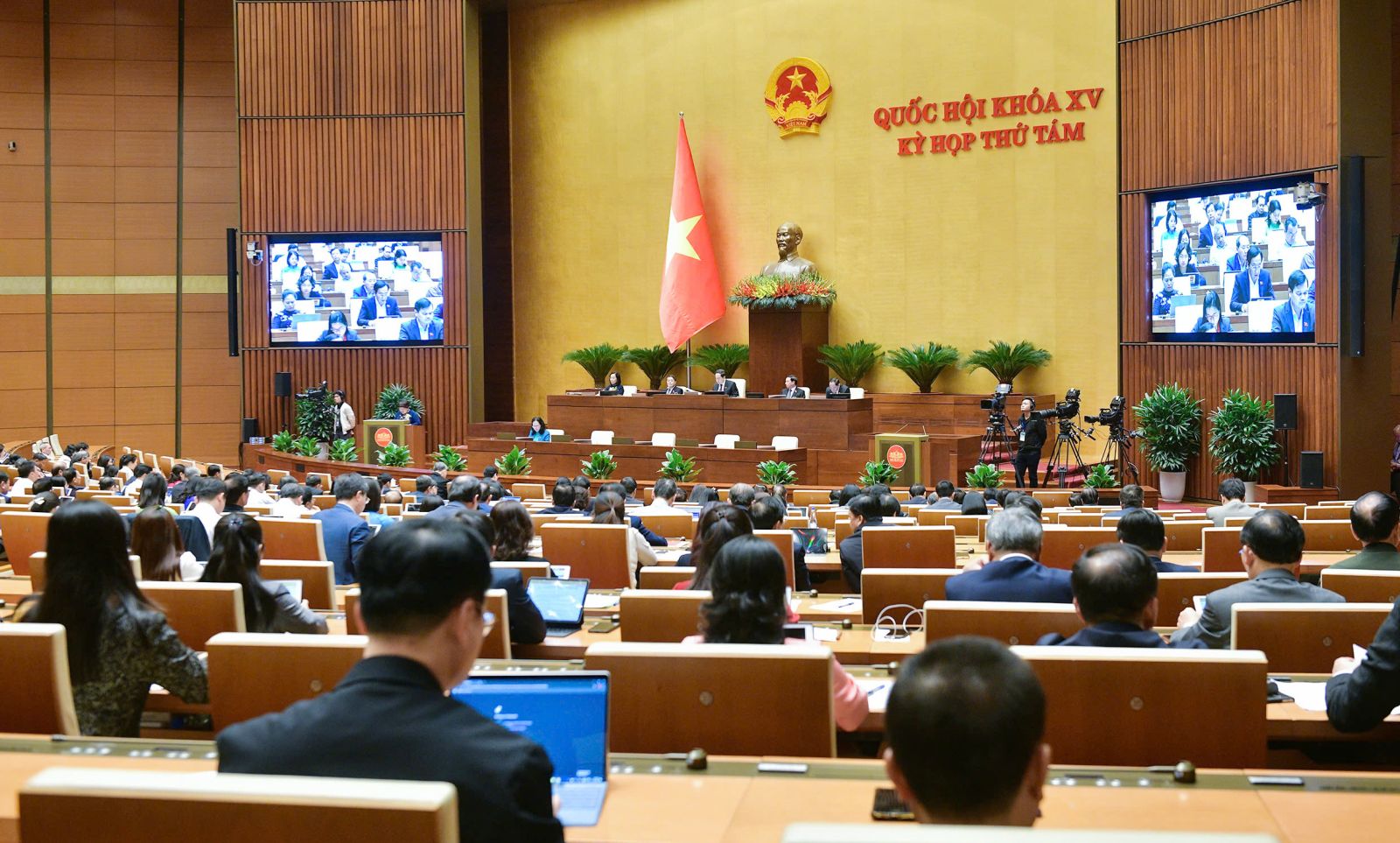Chiều 27.11, tại Nhà Quốc hội, tiếp tục Chương trình Kỳ họp thứ 8, dưới sự chủ trì của Chủ tịch Quốc hội Trần Thanh Mẫn, Quốc hội tiến hành thảo luận ở hội trường về dự án Luật Thuế tiêu thụ đặc biệt (sửa đổi).