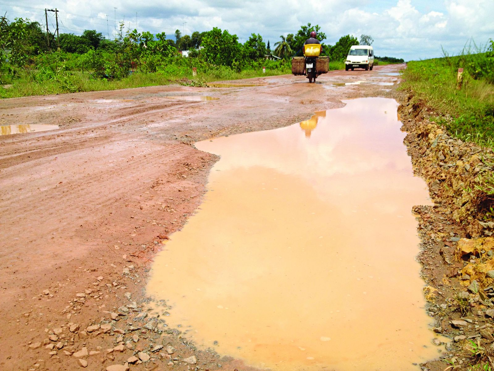 Ðây là tuyến đường trọng yếu, phục vụ nhu cầu vận chuyển nông sản trong huyện đi nơi khác và ngược lại. Con đường này đang xuống cấp nghiêm trọng do được đầu tư đã lâu, nhưng hằng ngày phải “cõng” nhiều lượt xe tải nặng lưu thông với mật độ dày đặc, trong đó có nhiều xe chở cát.