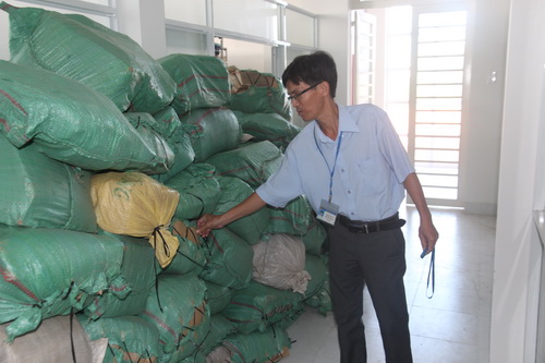 Hơn 200 bao chỉ xanh chứa tài liệu của Phòng Tài chính (TP.Tây Ninh) được dời về kho Lưu trữ tạm thời nhưng chưa được chỉnh lý (ảnh chụp vào tháng 12.2018).