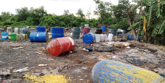Khi chúng tôi có mặt quan sát thực tế trong hai ngày 7 và 8.7, đúng là có bãi rác thải như người dân phản ánh. Nhiều thùng phuy rỗng được dùng để đựng hóa chất trước đó, có cả những thùng chứa đầy chất lỏng bên trong đang được để ngổn ngang tại bãi. Ngoài ra, còn có nhiều thùng khác nữa làm bằng kim loại và nhựa với thể tích nhỏ hơn thùng phuy, bên trong chứa chất lỏng màu xanh, đỏ, vàng…