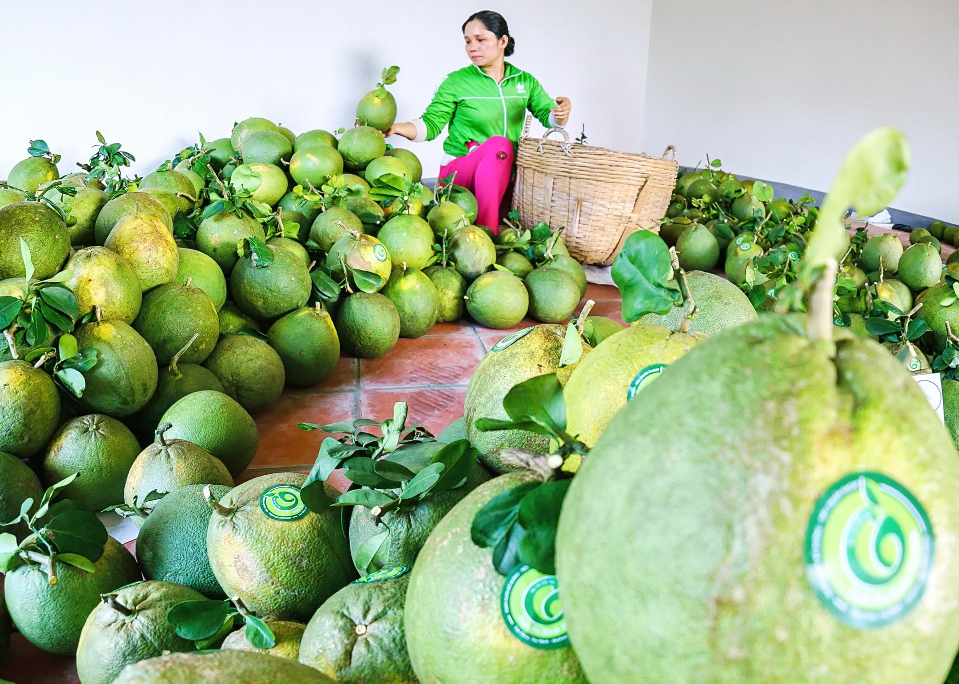 Bưởi da xanh đạt chuẩn VietGAP ở Tân Châu. Ảnh: Công Ðiều