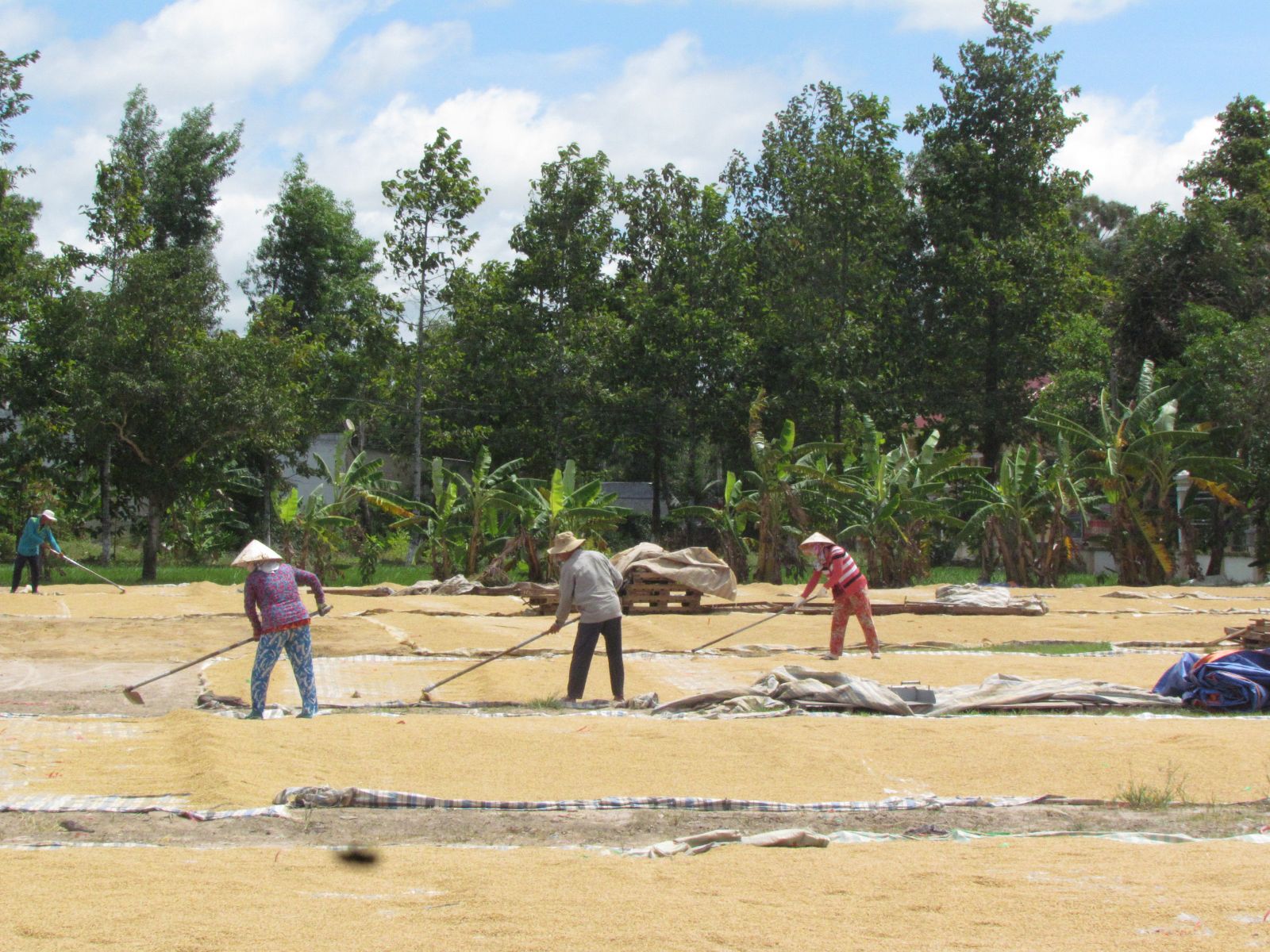 Nông dân Phước Chỉ phơi lúa.