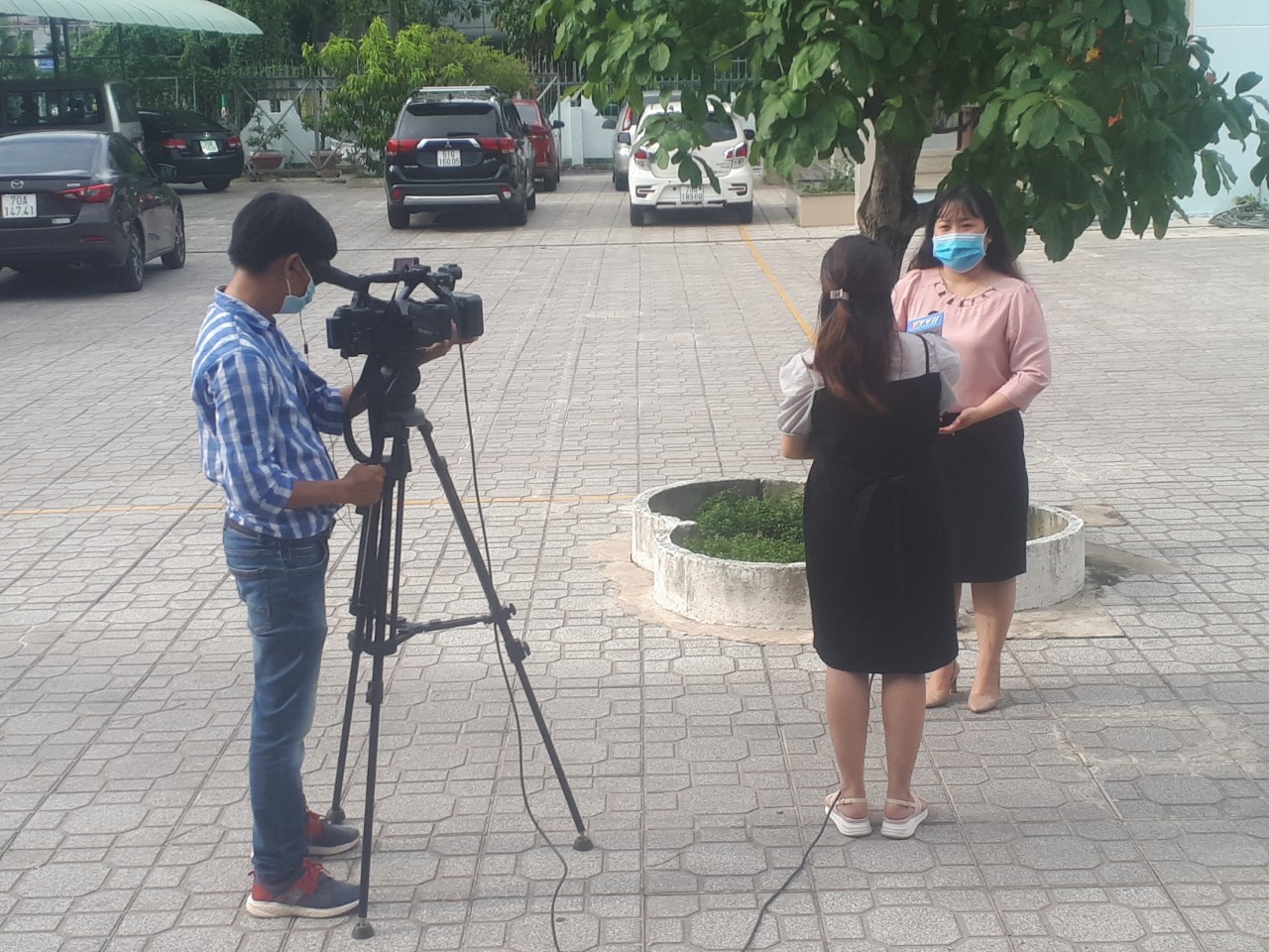 Phóng viên Đài PTTH tỉnh đang tác nghiệp.