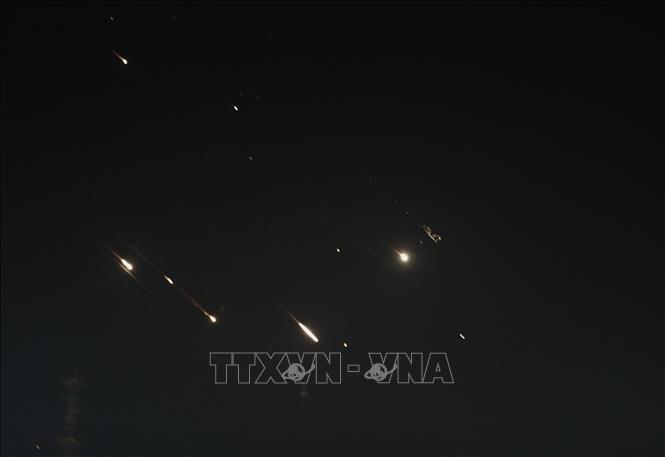 Hệ thống phòng không Iron Dome (Vòm Sắt) của Israel được kích hoạt tại Jerusalem để đánh chặn máy bay không người lái (UAV) và tên lửa từ Iran tối 13/4/2024. Ảnh: THX/TTXVN