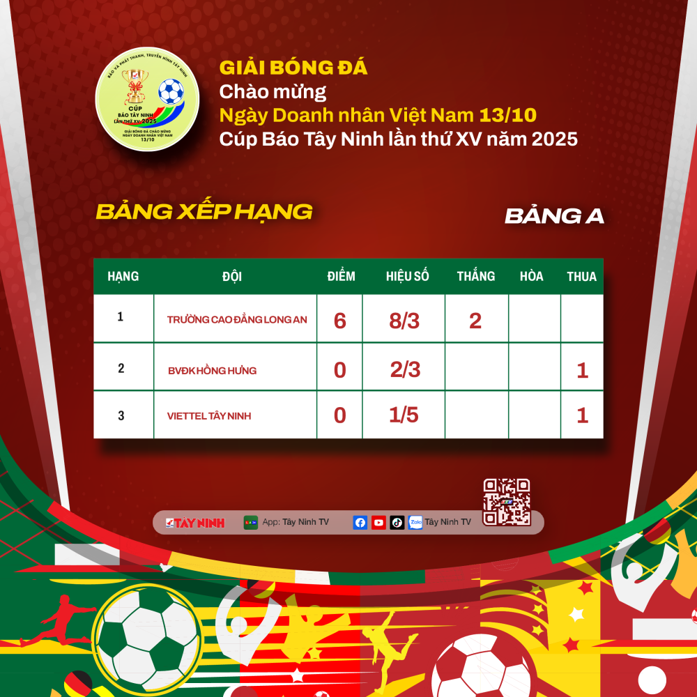 Những trận đấu cuối vòng bảng hứa hẹn sẽ mang đến nhiều kịch tính và bất ngờ, khi các đội đều khát khao ghi tên mình vào bán kết Giải bóng đá Cúp Báo Tây Ninh lần thứ XV – năm 2025.