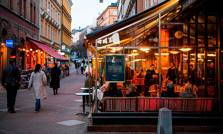 Nhà hàng vẫn mở cửa ở thủ đô Stockholm hôm 27/3. Ảnh: AFP.