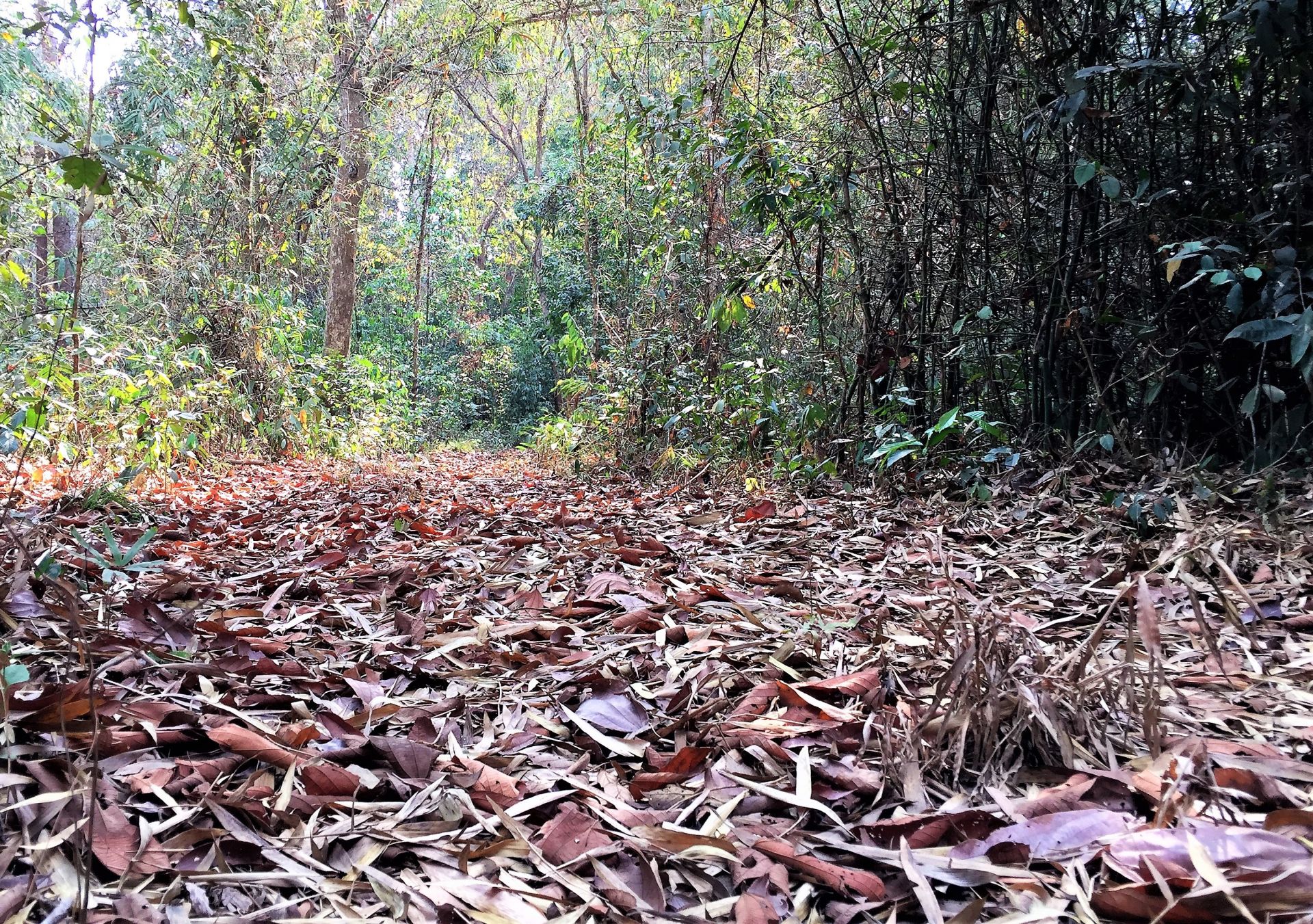 Lá khô tiềm ẩn nguy cơ gây cháy rừng.